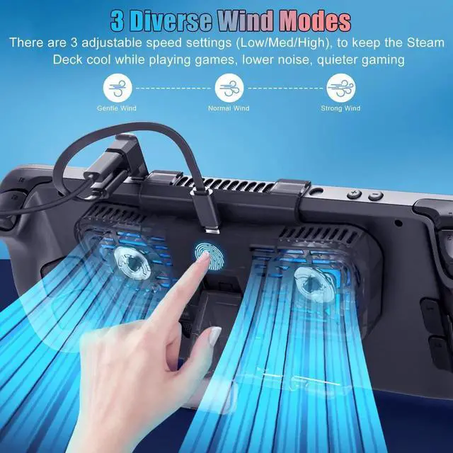 Built-in 2 turbocharged silent fans with lights, three-speed adjustable wind speed, provide strong ventilation performance, quickly, effectively and quietly reduce the temperature of the host. Prevent overheating caused by long-term gaming of the console, and further extend the life of the console.