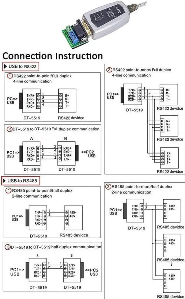 • USB to RS485/RS422 converter It easily lets you connect RS485 or RS422 device directly to your Laptop PC computer USB port