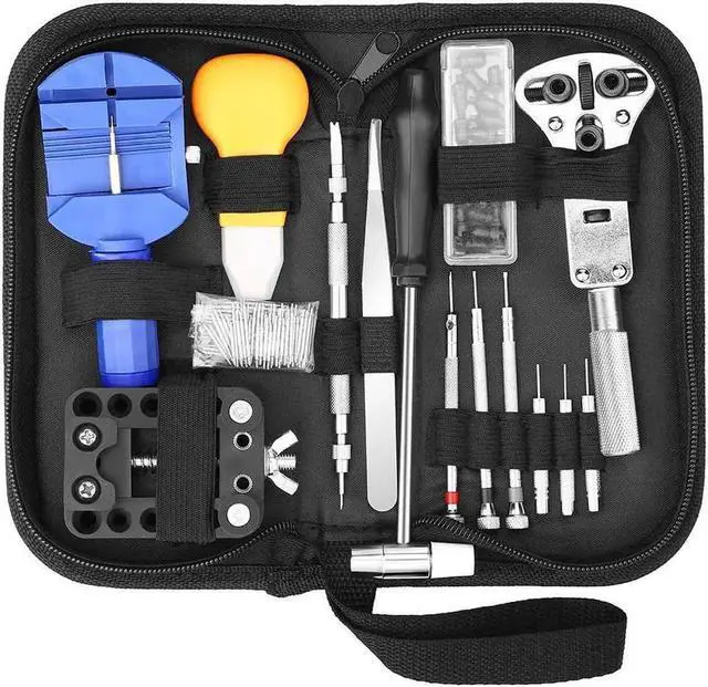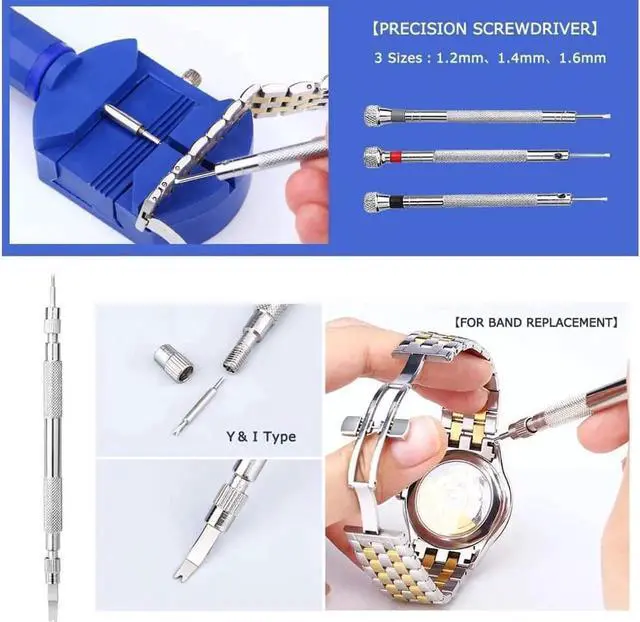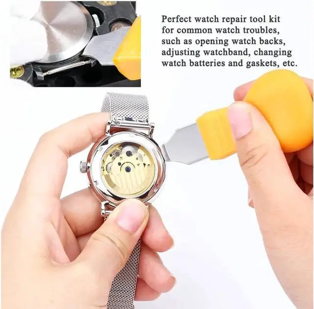Perfect watch repair tool kit for common watch troubles, such as opening watch backs, adjusting watchband, changing watch batteries and gaskets, etc.