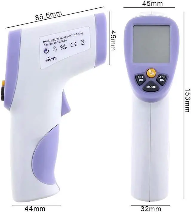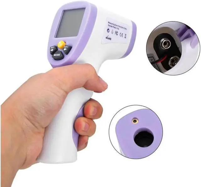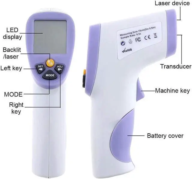Measure Body and Surface temperature Memorization of the last 34 measurements Three color backlighting (below 37.5C, show green, 37.5 ~38C, show orange; above 38C, show red)