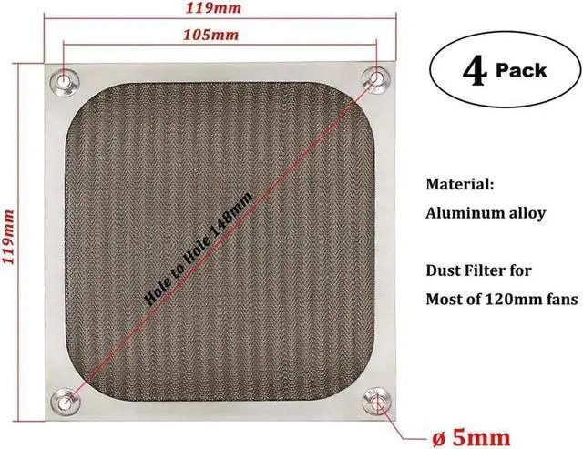Package Includes: 4x Fan Filter Grill + 16x Screws (fan in the picture is not included)