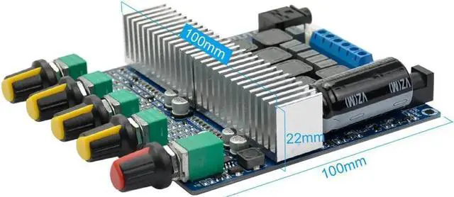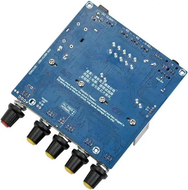 Highlights: 1. This is a support for Bluetooth audio receiver board, with preamp amplification, bass frequency processing. With bass, left and right channel volume adjustment, treble adjustment, the total volume potentiometer control 2.1 amplifier board. 2. DC power supply 12-24V power supply, maximum support 50W (left channel) +50 W (right channel) +100 W (bass channel) three-channel output.