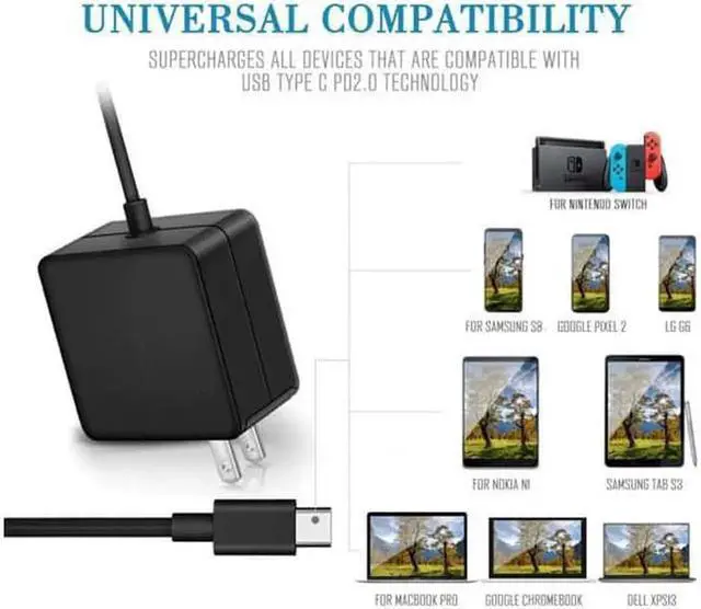 Connecter Size: USB Type-C. Quick Charge, Slim, lightweight design, Simplifies storage. Great Replacement Up to 87W/90W Charger for Apple MacBook Pro, MacBook 2015 and newer, MacBook Air 2018, iPad Pro 2018, Samsung Chromebook Pro/Plus, Acer Spin 7, Dell XPS 13, Lenovo Thinkpad Carbon x1 5th 6th Gen, Samsung Galaxy S8/S8+/S7/S7 edge/S6/S6+/S6 edge/ S6 edge+/Note9/Note8, Google Nexus/Pixel / Pixel 2 / Pixel 3 / Pixel XL / Pixel 2 XL /Pixel 3 XL / Pixelbook, GoPro HERO5/6 and Any Other Laptops or Smart Phones with the USB C.