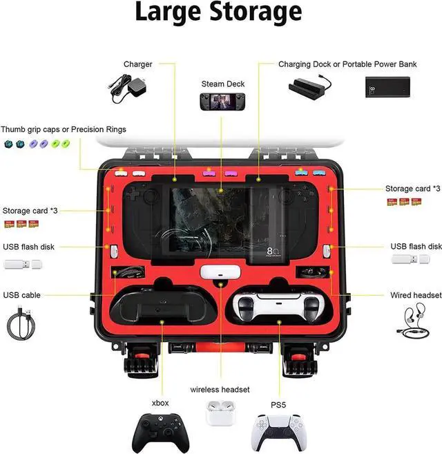 Hard & Sturdy - This steam deck carry case is made of quality ABS material, strong and durable, anti-collision and anti-drop. The inner lining is made of high-density sponge, which can protect your steam deck and accessories from scratches and bumps. Each slots are precisely cut based on the size of the steam deck and accessories, which can hold them in place. Keep your steam deck securely and neatly stored.