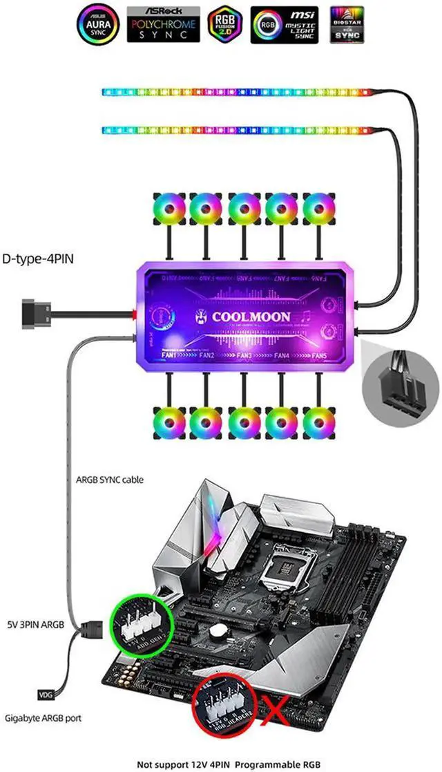 Note: this controller does not support connecting the motherboard software to control the light synchronization; This controller is not a general controller and only supports the use of products of this brand. If it is inserted into the product line sequence of other brands, it will burn out!