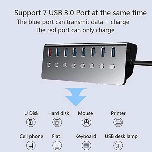 Instantly adding 7 USB 3.0 ports with 1 USB 2.0, supports USB 3.0 transfer rate of up to 5 Gbps data to achieve fast transfer between devices, The Data Hub lets you transfer HD Movies in no time, this multiport gives you additional ports to meet all of your needs. such as USB hard drives, flash drives, and USB-mobile video adapter, keyboard,card reader, earphone.