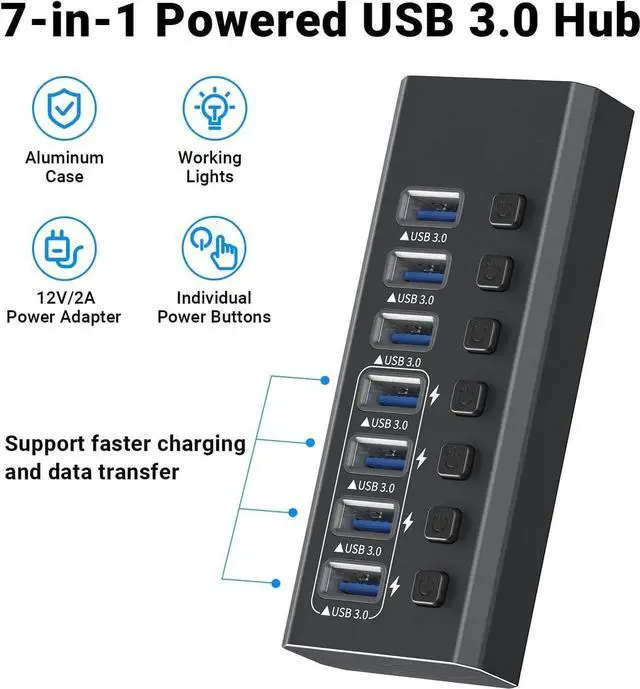 upgraded powered USB 3.0 hub, 7 devices just need 1 powered USB hub!
