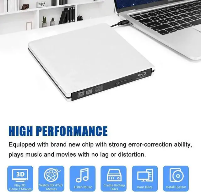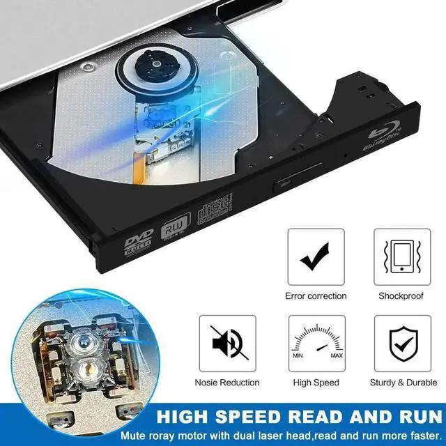 Disc specification: 12CM, 8CM * Read and burn DVDs, CDs and Blu-Ray Discs (BD) at a More Stable and Faster Transmission. Watch 3D Blu-ray movies, read 3D Blu-ray discs, create backups, install operating systems and create backup discs, etc. * Burn D9 double-layer 8.5G CD, readable Blu-ray disc can also support DVD-RAM disc repeated erasing, burn Blu-ray, a full-featured external optical drive for playback and burning. Read Speed (Max.