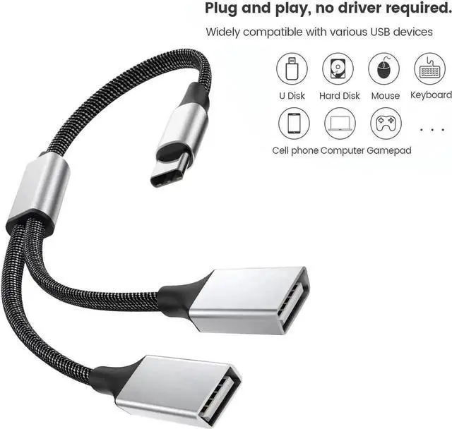 usb c to usb adapter: It comes with USB-C trancefer to USB-A ports so that you can easily plug in two USB-A accessories. With double-braided nylon and aluminum casing that are not sensitive to twists and bends, Two-layer shielding minimizes signal interference.