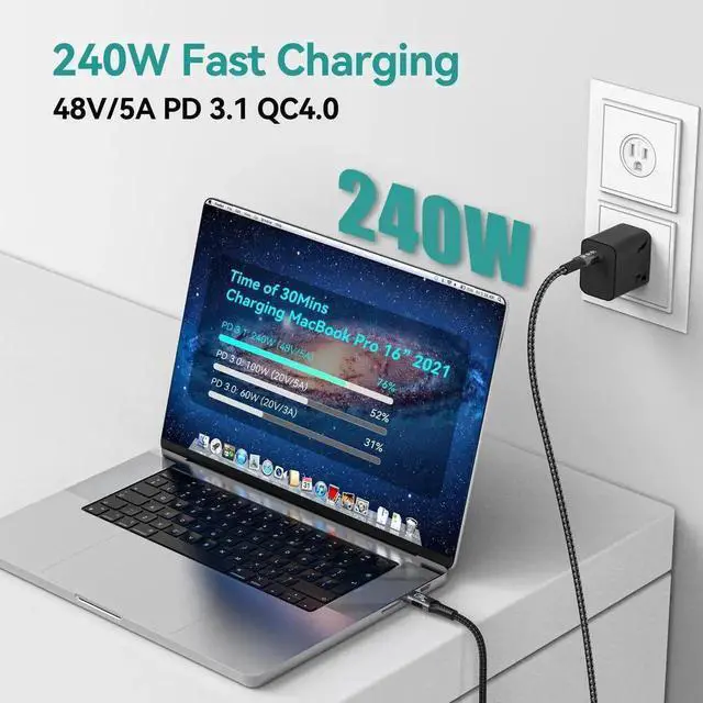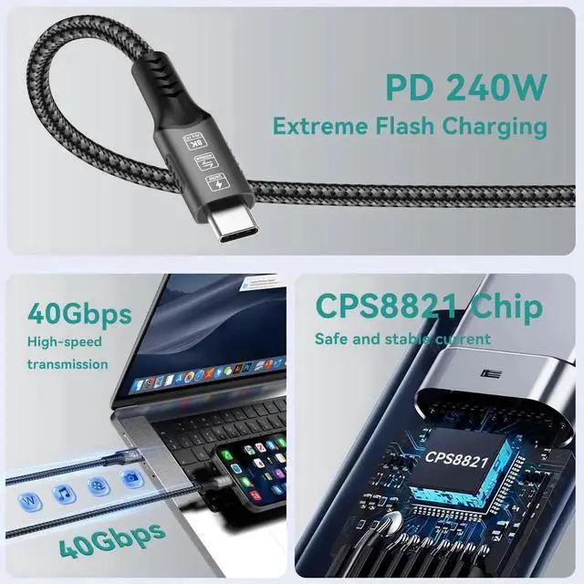 240W PD Fast Charging: USB 4 Cable for Thunderbolt 4 Cable support 240W (48V/5A) PD 3.1 fast charging. 240W backward compatible.