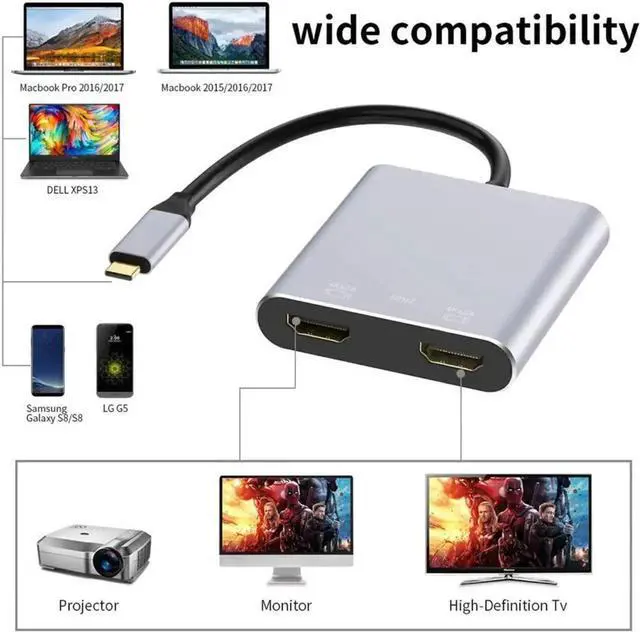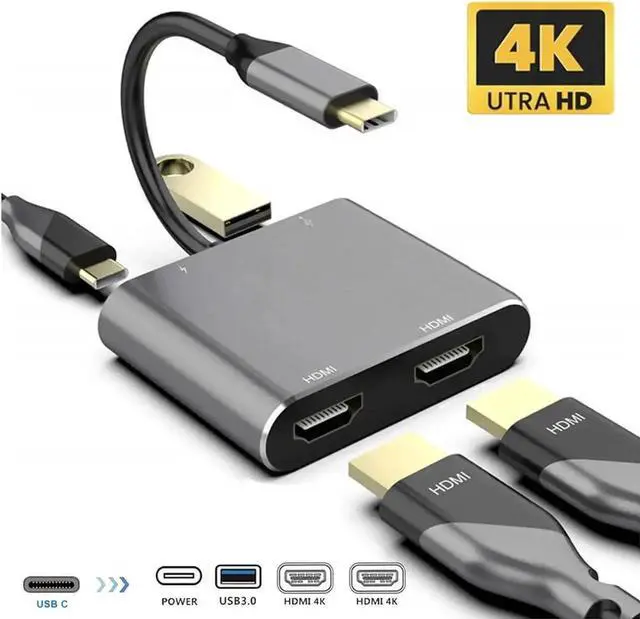 ![Alt view image 3 of 7 - [4 in 1] USB C Hub with Dual HDMI Port, Type-C Docking Station USB C to Dual HDMI 4K USB 3.0 PD Fast Charging Dual Screen Extend Display USB C Hub Converter for Macbook Laptop Mobile Phone PC](https://c1.neweggimages.com/productimage/nb640/C1M4S2509120VTOEFD7.jpg)
