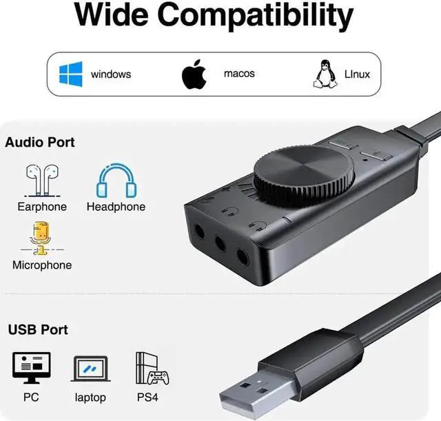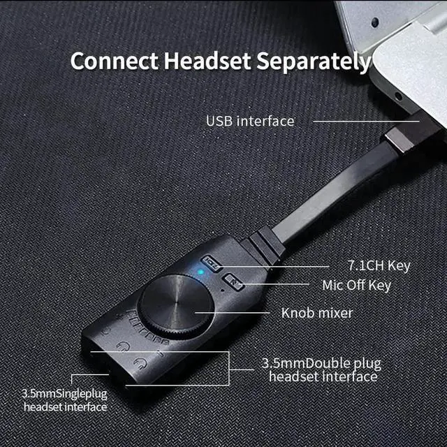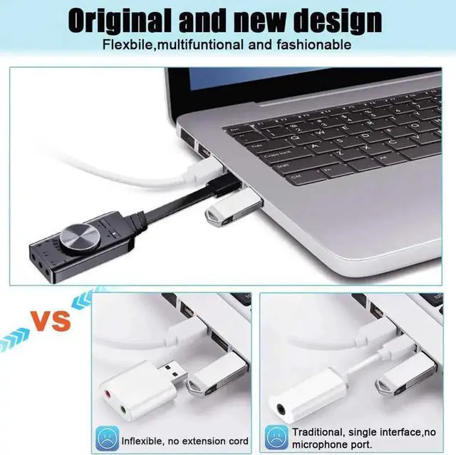 (3). Have an external sound card adapter when you need to connect more than one microphone, headphone with PC. If you require high quality audio sound, try this product.