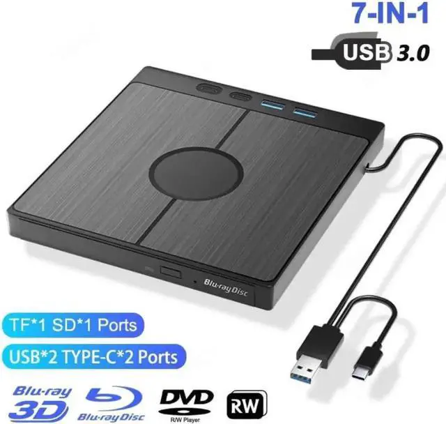 ![Alt view image 6 of 7 - External Blu Ray CD DVD Drive, [7 in 1] USB 3.0 Type-C 3D Blu-ray DVD Burner Slim Optical External Bluray DVD Burner with SD/TF Card Slot 2 USB 3.0 & 2 Type-C Ports for Laptop PC Windows Linux MacOS](https://c1.neweggimages.com/productimage/nb640/C1M4S2509121F6BBO5B.jpg)
