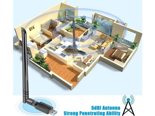 - [5dBi EXTERNAL ANTENNA]High gain 5dBi antenna network card that offer stronger signal penetration strength and wider wireless coverage and help you connect even when signals are weak. Even though you live in a big manor or villa , you are not afraid of no signal.