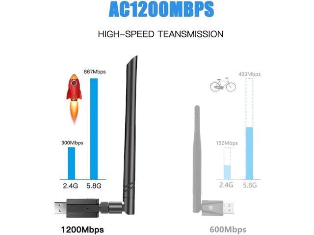 - [1200Mbps ULTRA-SPEED]USB wifi adapter 1200Mbps upgrades PC to 802.11ac with ultra-fast AC1200 wireless adapter speed, you can get 867Mbps wireless speed on 5.8GHz WiFi band or 300Mbps speed on 2.4GHz WiFi band, Performance to reduce freezing and lags when streaming and gaming.