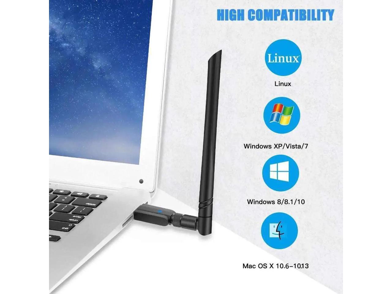- [WIDE COMPATIBILITY]Compatible with Windows 10/8/8.1/7/Vista/XP/2000, Mac OS 10.6-10.13 and Linux. 1200Mbps Wi-Fi adapter support all WLAN routers: WPA/WPA2/WEP.