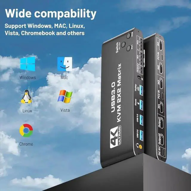 - Product Type: HDMI USB 3.0 KVM Matrix (2 in 2 out)
