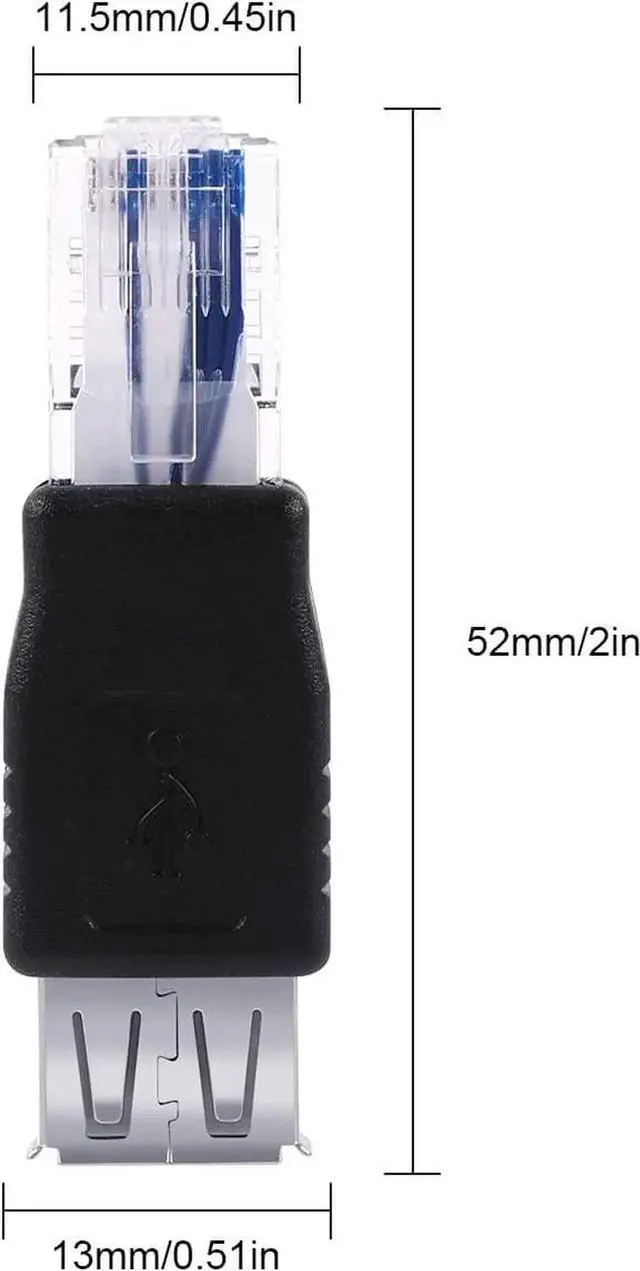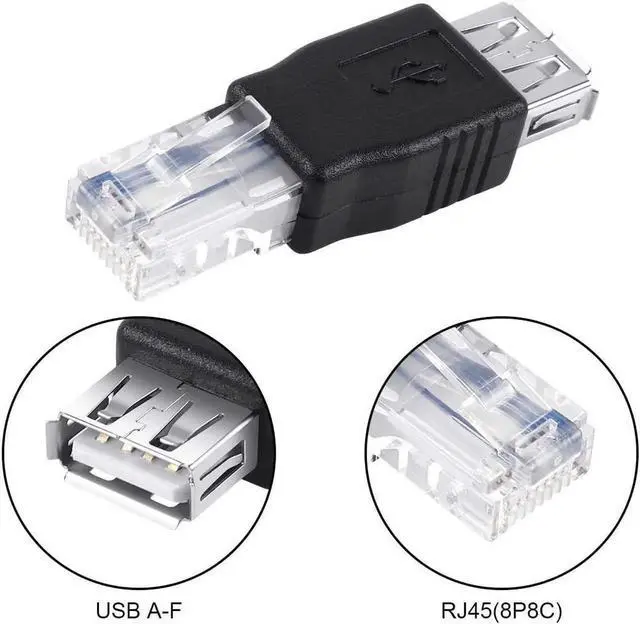 ? [RJ45 to USB] New USB 2.0 A Female To 8P8C Plug (RJ45) Adapter? [USAGE] One end RJ45 male of USB to network adapter can only be inserted in the computer's RJ45 network jack the other end USB 2.0 female connected to a USB port of the dialer or router the rj45 male to usb 2.0 female adapter can be used when the USB cable cable for edge An ADSL modem or USB interface with a USB port? [NOTICE] USB to RJ45 adapter can be used to connect a USB ADSL modem to a router with an