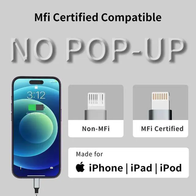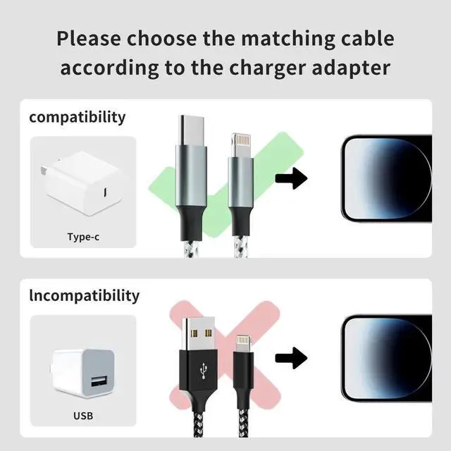 (Note: You need to use 20W or above USB-C Power Adapter to achieve Power Delivery Fast Charging)Broad Compatibility&Support CarPlay: This iPhone charger cable supports PD Fast Charge 20W (max) for iPhone 14/14 Pro/14 Pro Max/14 Plus/13/13 Pro/13 Pro Max/SE 2022/12/12 Pro/12 Pro Max/12 Mini/11/11 Pro/11 Pro Pax/SE 2020/XR/XS/XS Max/X/8/8 Plus/ iPad Pro 12.9 10.5 11/ iPad Air3 10.5 /iPad mini 5 and newer Also supports the standard charge (5V/ 2.4A max) for iPhone 7 Plus/7/6 Plus/6/6S Plus/6S and other older modelsDurable