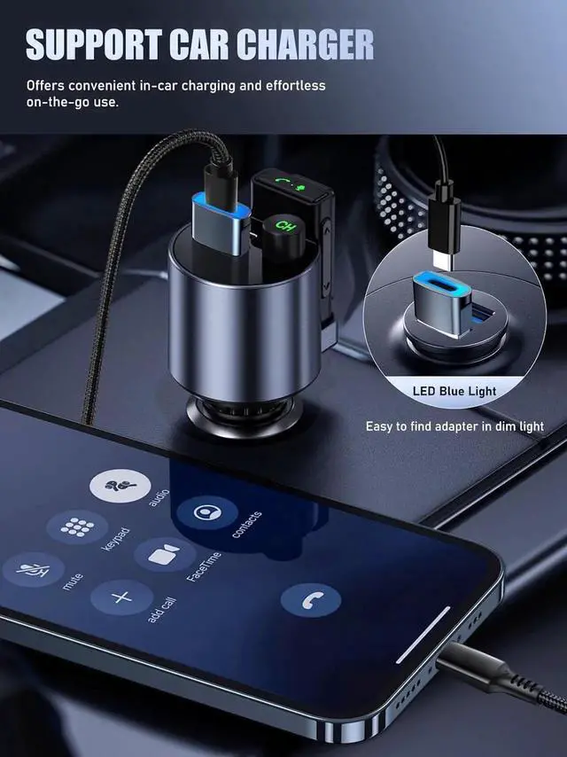 Support Carplay Charger: The type c iPhone 16/15 charger is compatible with Carplay and Android Auto function for in-car use. Features a soft LED light for quick positioning in dimly lit environments and easy to find in the car. With compact storage panel with notches it lets you easily access to the adapter.