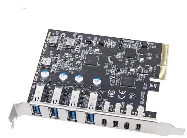 FOR PCIE USB 3.2 GEN2 10Gbps Expansion Card PCI Express X4 to 4 Port TYPE-A + 4 Port TYPE C Adapter USB HUB Multiplier for Desktop PC