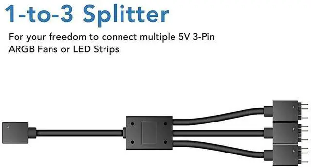 5V/3pin ADD-RGB to 12V/4PIN Adapter with 3-Way Splitter 5V ARGB to 12V RGB Converter Sync with Motherboard-AB01