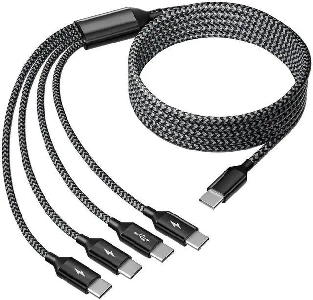 MULTI USB C CHARGING CABLE: The usb c cable is unique brings you convenience and sharing feeling. Four c-type charging head in 1 cable make the phone charger simple lightweight and portable. You can carry this 4 in 1 multi charger cable anywhere perfect for home travel business trips dock or sharing with friends. LATEST USB C TO