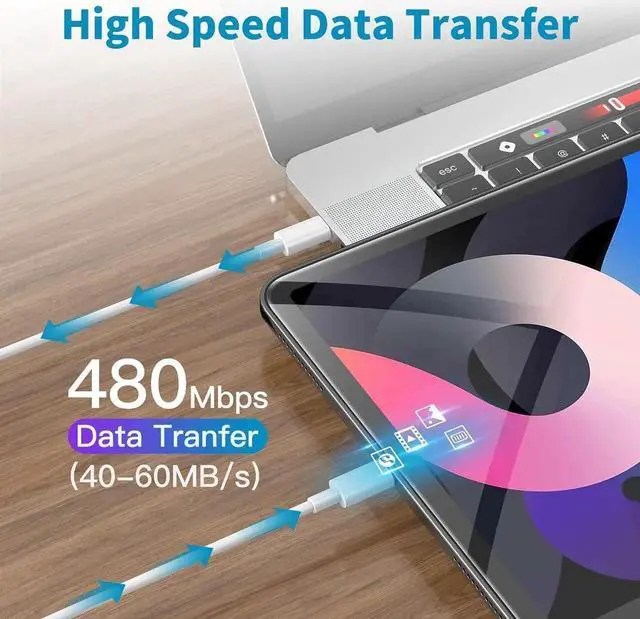 Supports Power Delivery: Our cable is designed for fast charging, powering up most USB-C devices to 50% in just 30 minutes. It allows for a maximum charging speed of 60W 20V 3A and supports high-speed data sync at 480Mbps.