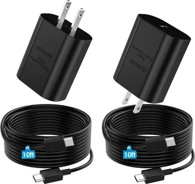 Confidence: UL certified 25W Type C charger with 1-year warranty and 8-hours fast customer service. Buy with confidence - your satisfaction is our top priority. What You Can Get2pcs PD 25W Charger block + 2pcs long 10ft type-C to type c charging cable.