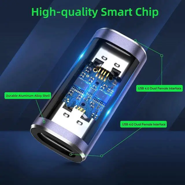 The usb c coupler meets power specs and data transfer rates of USB4, supports 40Gbps data transmission speed. With USB4 cable, it can support 8K@60Hz HD video & audio output.