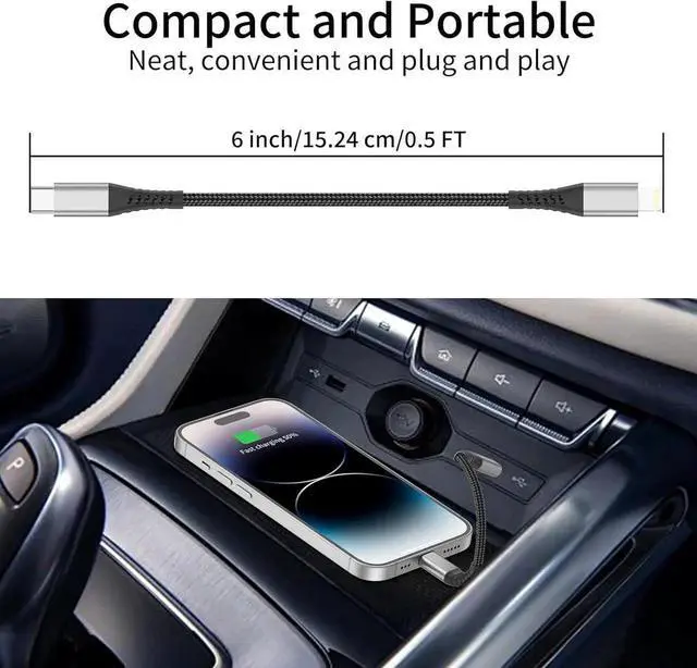 Wide Compatibility: This 6 inches USB C to lightning cord compatible with iPhone 14/14 Plus/14 Pro Max iPhone 13/12/11/Pro Max/Mini iPhone XS/XR/X/SE iPhone 8/7/6/Plus. Also compatible with iPad iPods and AirPods.