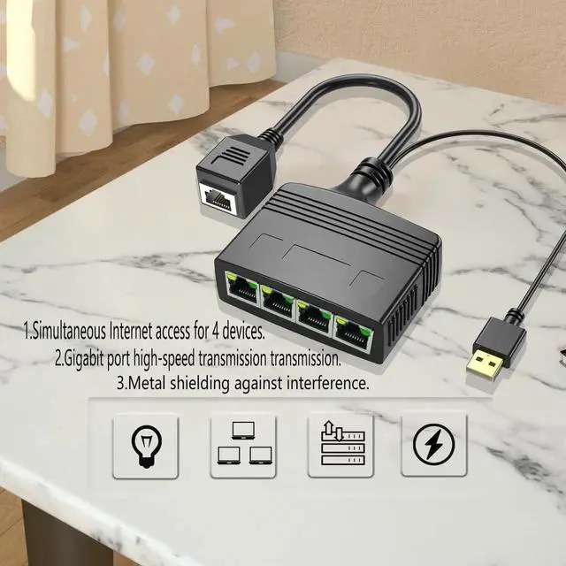 RJ45 Splitter Adapter Easy to connect, 4 devices networked at the same time, simple and fast