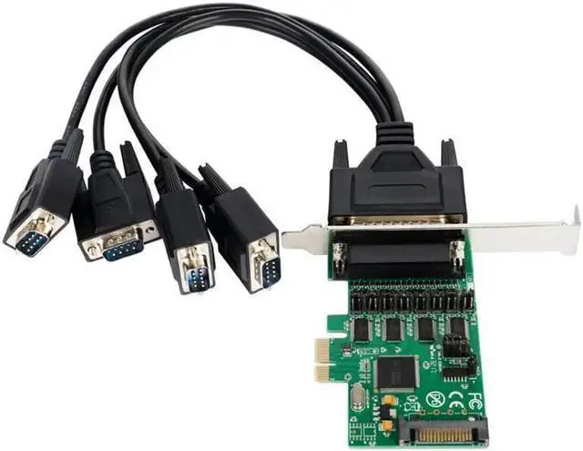 Features Chipset: WCH384L Compliant with PCI Express Base Specification 1.1. Supports x1, x2, x4, x8, x16 (lane) PCI Express Bus connector keys. Support 4 x UART serial ports Built-in 16C950 compatible UART 128-bype deep transmit/receive FIFOs Data transfer rate up to 230400bps Optional RS-232 signal or power output to serial device Provides 5VDC or 12VDC power output via pin 1 Provides 5VDC or 12VDC power output via pin 9 TTL UART for Dedicated Serial Port Selectable TTL voltage level UART for TTL Keyboard etc Plug-n-Play, I/O address and IRQ assigned by BIOS. Application This board offer independent serial ports for connecting terminals, modems, printers, scanners, cash registers, bar code readers, keypads, numeric displays, electrical scales, data acquisition equipment, and other serial devices for the PC and compatible systems. System Requirements Windows98/98e/ME/10 Windows 32bit 2000/XP/2003 Server/Vista/7 & Windows 64bit XP/2003 Server/Vista/7/8 Linux Kernel 2.4 & 2.6 One available PCI Express slot Package Contents 1 x Powered RS-232 4-Port PCIe Card 1 x Driver CD 1 x User Manual 1 x Low Profile bracket 1 x Long Profile bracket