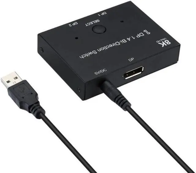 Displayport 1.4 KVM Switch Splitter 8K@30Hz 4K@120Hz 1x2 or 2x1 Bi-direction Switch Splitter DP Converter for Source and Display