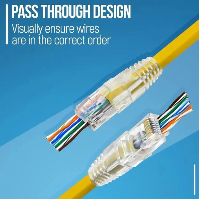 This Pass-through UTP Cat6 connectors make it easy by allowing the wires to pass all the way through the plug so you can verify they are in the correct order before crimping the plug.