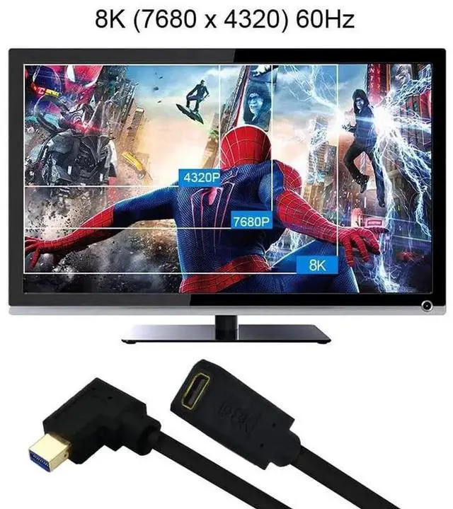 8K Mini DisplayPort Extension Cable, 1FT 90 Degree Left Angled Mini DisplayPort (Mini DP) Male to Female 8K Extension Cord for with Mini DP PC/Laptop or Thunderbolt 2 Mac PC