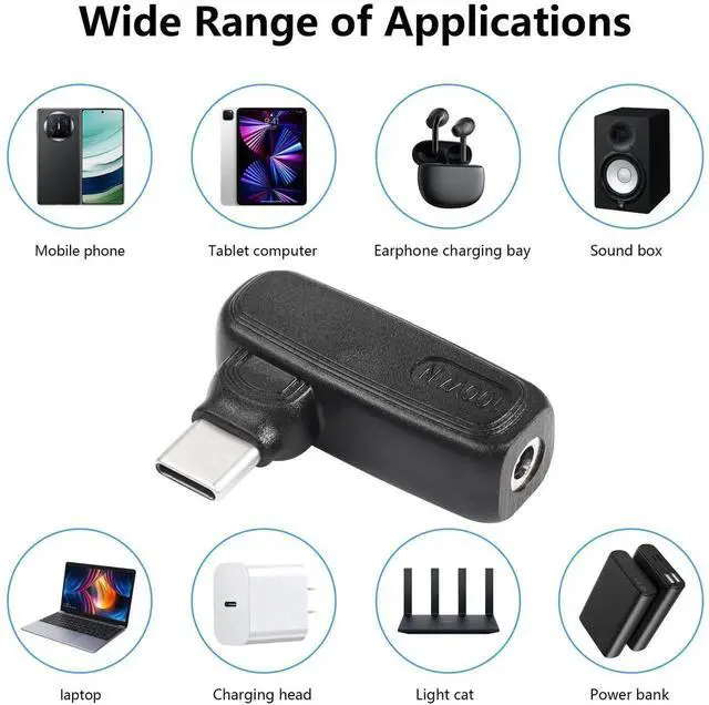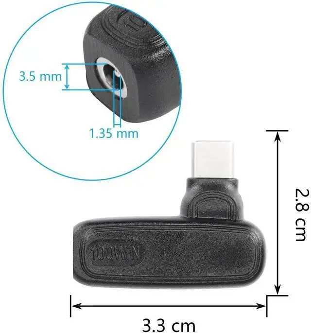 - [Convenient to Carry] DC 3.5mm x 1.35mm Female input to USB Type C male power charging adapter, travel friendly with lightweight & compact portable design that you can get rid of the heavy chargers / power bricks, and carry it in your backpack even in shirt pocket.