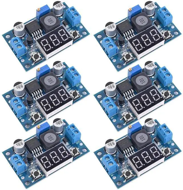LM2596 Adjustable DC-DC Step-Down Buck Converter Module with LED Voltmeter Display, Voltage Regulator 4.0-40V Input to 1.25-37V Output Power Supply Module (Pack of 6)