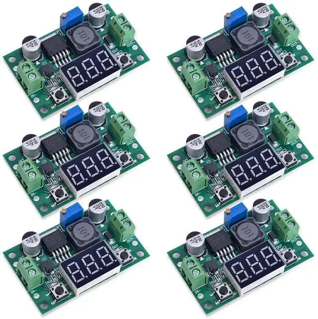 6pcs LM2596 Adjustable DC-DC Step-Down Buck Converter Module with LED Voltmeter Display, 4.0-40V Input to 1.25-37V Output
