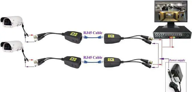 This is video power transmitter and receiver that allows the transmission of real time CCTV HD video power signal via cost effcetive.Unshielded twisted paired(UPT) cable. Baseband (composite) signals of any type are support is. its compatible with all HD TVI, HD CVI,AHD and CVBS analog camera. used in pairs, eliminates costly and bulky coaxial cable. the superior interference rejection and low emissions of allow video sigmals to coexist in the same wire bundle ad telephone , datacom, or low voltage power circuits . This allows the use of a shared or existing cable plant. built in surge suppressor to protect video equipment against,damaging voltage spikes. its crosstalk and noise immunity ensure quality video signals."