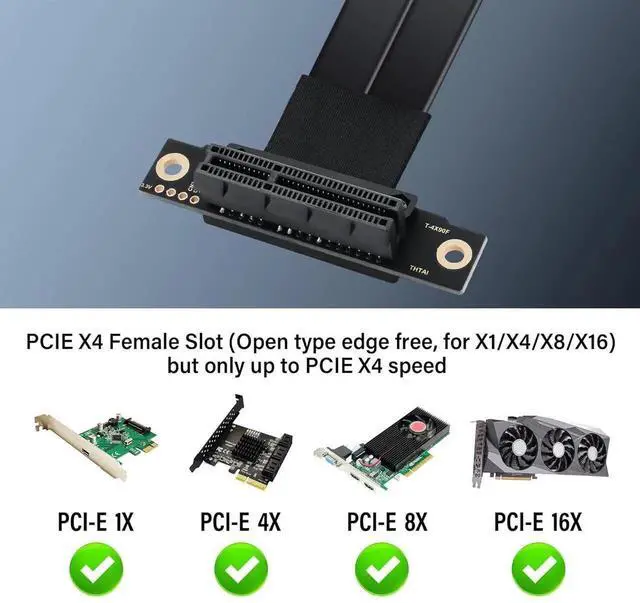 4. PCIE X4 male support devices with PEIE X4/X8/X16 sockets.