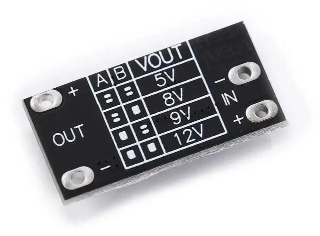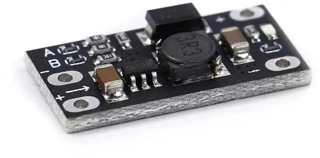 Basic parameters The output voltage can be set to 5V/8V/9V/12V, the default is 12V Input voltage range: 2.5V~VOUT-0.5V Output performance: Take 3.7V lithium battery input as an example, it can output 5V1.2A, 8V0.7A, 9V0.6A, 12V0.5A. Make sure that the input current and output current do not exceed 1.5A. Voltage setting description The front side of the PCB can be seen with the words A and B. The output voltage can be changed by using the soldering iron to change the pad on and off. In the following table, 0 means the pad is disconnected and 1 means the pad is connected. A B VOUT 0 0 5V 0 1 8V 1 0 9V 1 1 12V The pad next to the LED indicator can also be turned off to turn off the indicator. Product size: 22 × 11 × 3.6mm