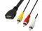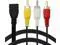 USB 2.0 male to 3 RCA female cable, RCA connectors are standard yellow, red and white audio connectors, red is the right channel, white is the left channel, and yellow is composite video.