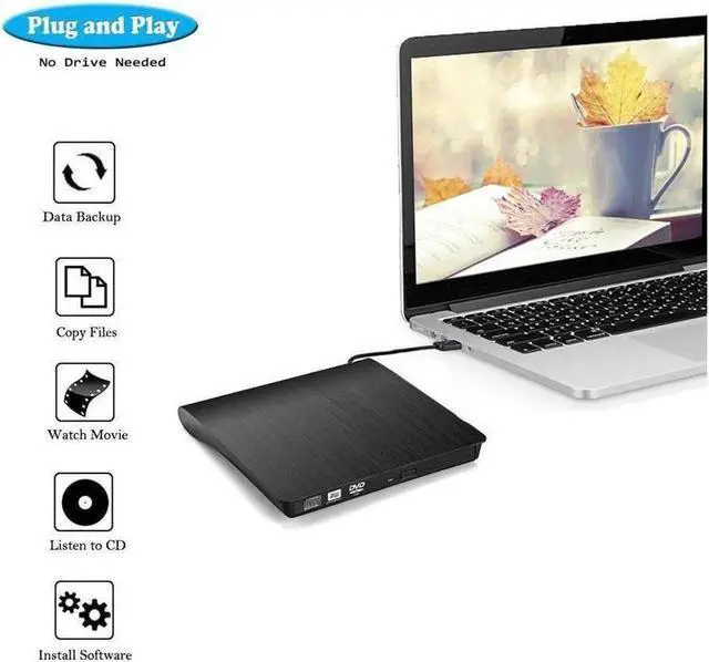 ? PLUG & PLAYP? Easy to use. Rioddas external DVD drive is powered by USB port. No external driver and power needed. Just plug it into your USB port and the DVD driver will be detected.