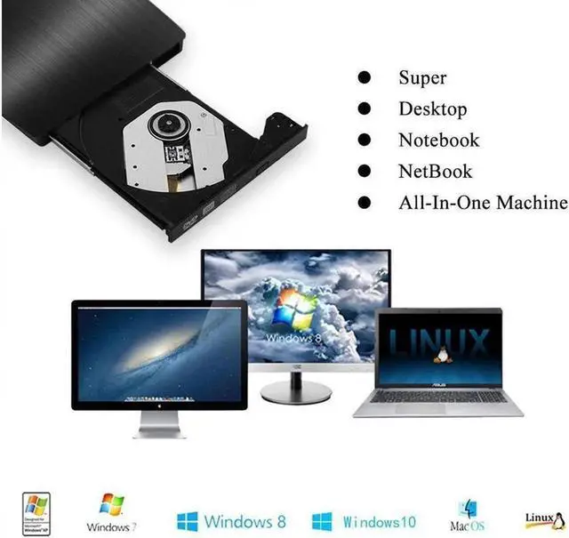 ? SUPPORT COMPATIBLE SYSTEM? This DVD drive is ideal for various devices. It support Windows XP/2003/Vista/7/ 8.1 /10, Linux, all version Mac OS system. For the desktops, please connect the device to the USB port of the motherboard for normal use.