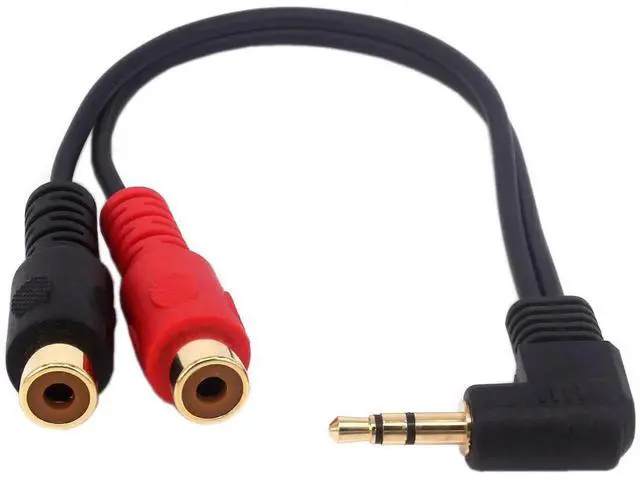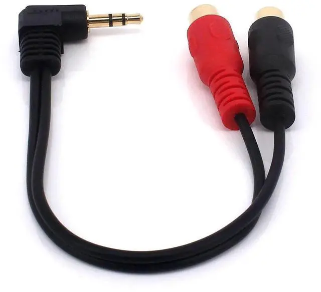 RCA Jack Adapter Cable, Gold Plated 90 degree Right-angled 3.5mm Gold 1/8" TRS Stereo Male to Dual Female RCA Jack Adapter Cable-8 Inch