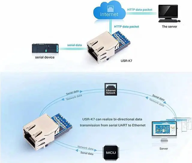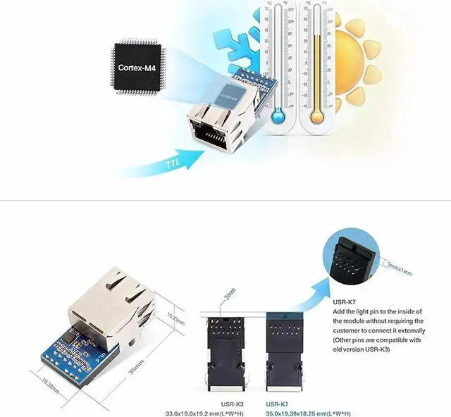 *Easily USE* - K7 is a module that can realize data transparent transmission between the Network and TTL serial port, which is equipped with ARM cortex-M4 processor. No need to care of the details, the module realize the protocol converse.Parameters can be set in the software and webpage, configure one time and save forever.
