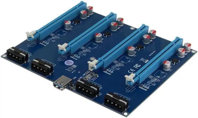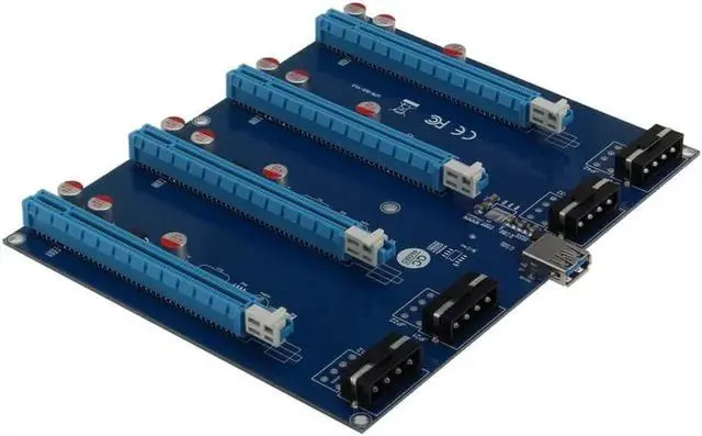 PCI-E 1X to 4 slot 16X riser card with high speed USB 3.0 cable.