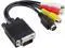 3 x RCA female (be aware that VGA ports do not transmit audio signal, only the video RCA cable will work) 1 x S-Video female (mini-DIN 4-pin) Cable works with laptops and desktops that have VGA cards which allow TV-Out function capability through the VGA connector Check your documentation before purchase to be sure your video-out port supports TV signals