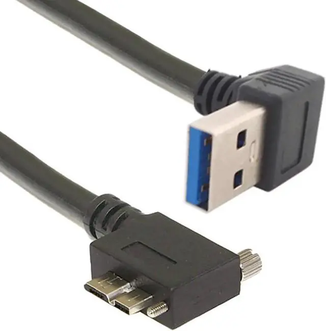 Down Direction Right Angled 90 Degree USB 3.0 A plug to Micro B Plug Left Angled locking screws Panel Cable